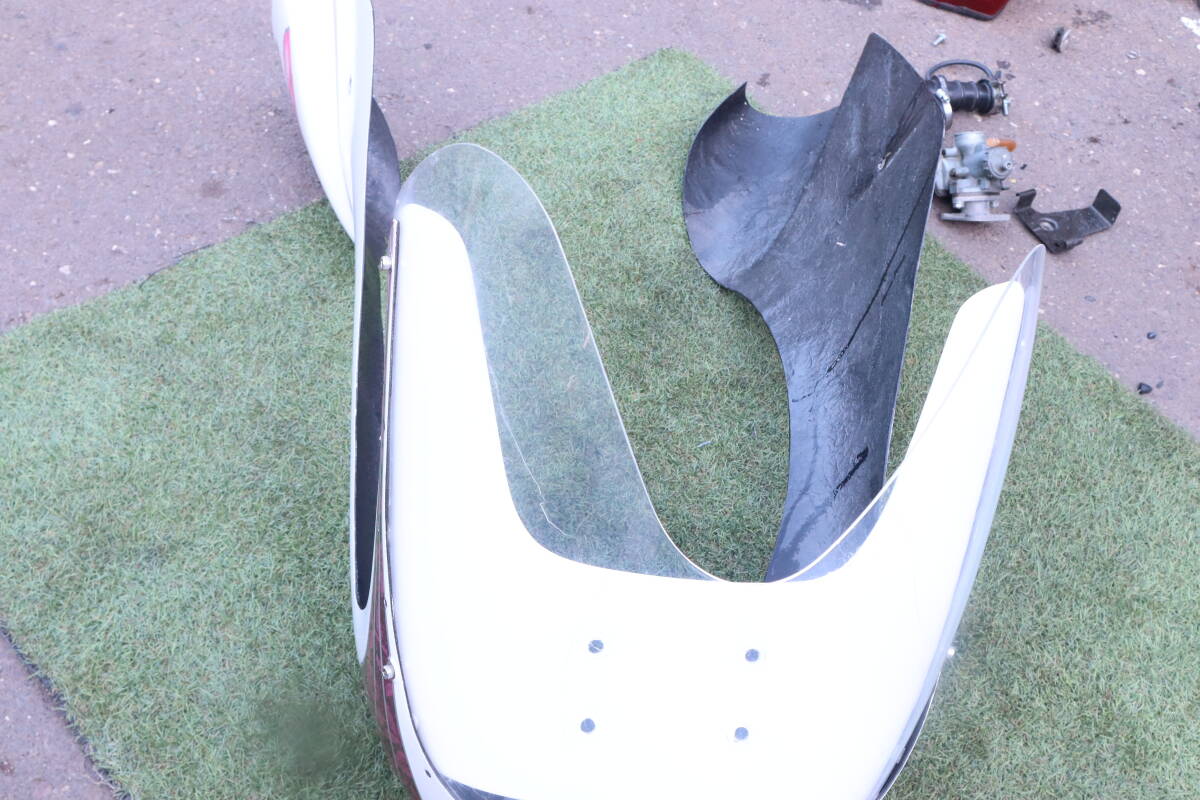 FRP厚いです。スクリーン割れ無し。傷あり。ライト付き。大物扱いで送るので近郊で4500円ほどの送料です。