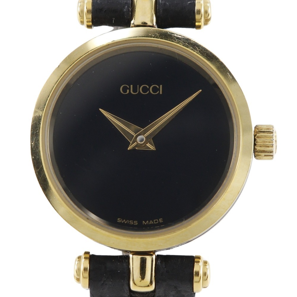 GUCCI グッチ シェリー 2000L 腕時計 金メッキ×レザー クオーツ アナログ表示 レディース ブラック文字盤【I193025007】中古