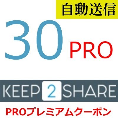 Product name: 【自動送信】Keep2Share PRO 公式プレミアムクーポン 30日間 通常1分程で自動送信します