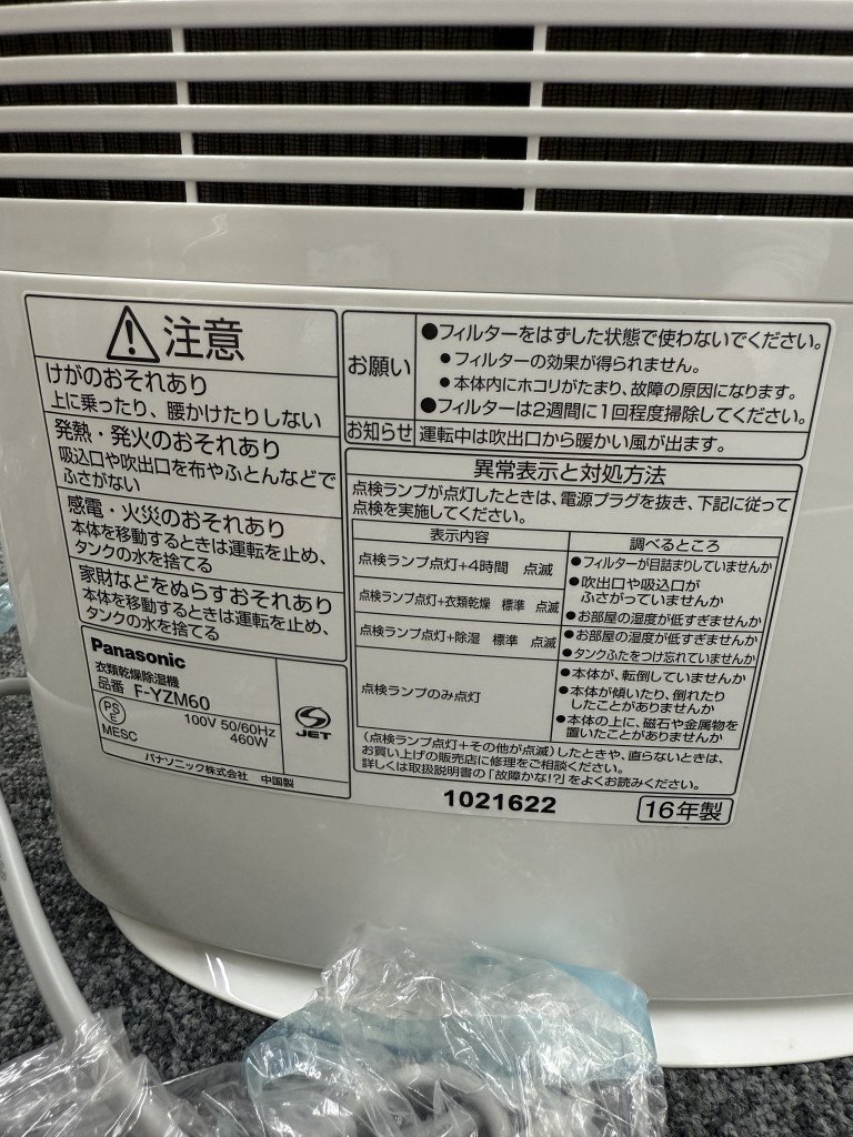 Product name: ▽訳あり Panasonic パナソニック 衣類乾燥除湿機 F-YZM60-W 16年製 KB208793