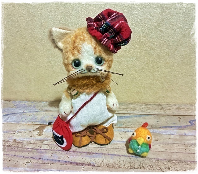 ◆wai*hap's◆茶トラ ねこ 小鳥 羊毛フェルト ハンドメイド