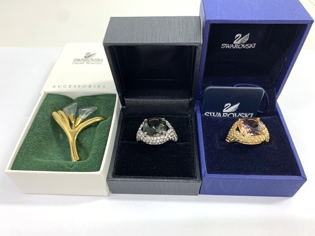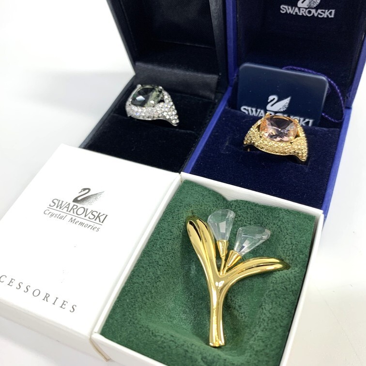 Product name: SWAROVSKI スワロフスキー 3点セット(ブローチ1点 リング2点)【中古】ラインストーン 指輪 ゴールド シルバー アクセサリー MINON10-194GI