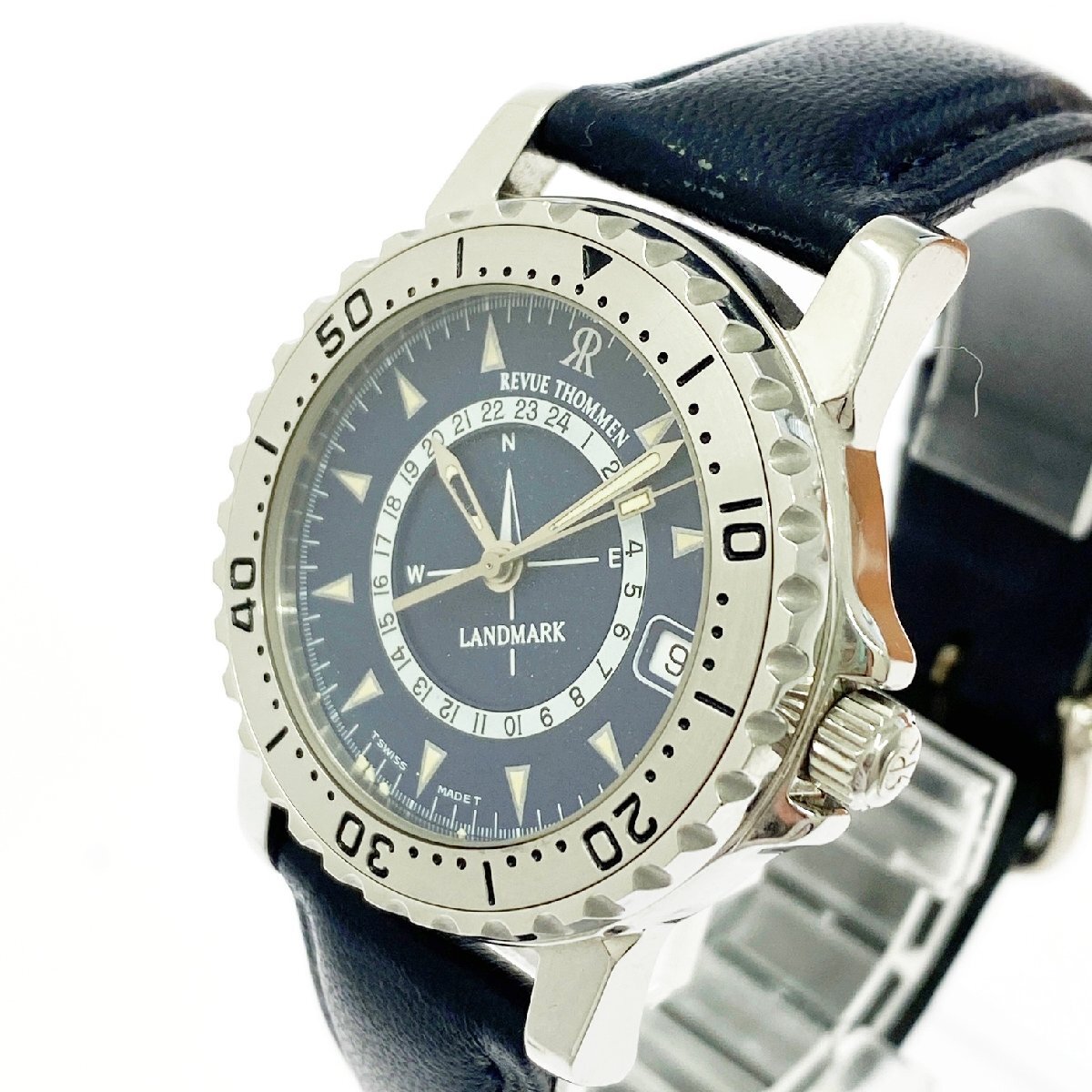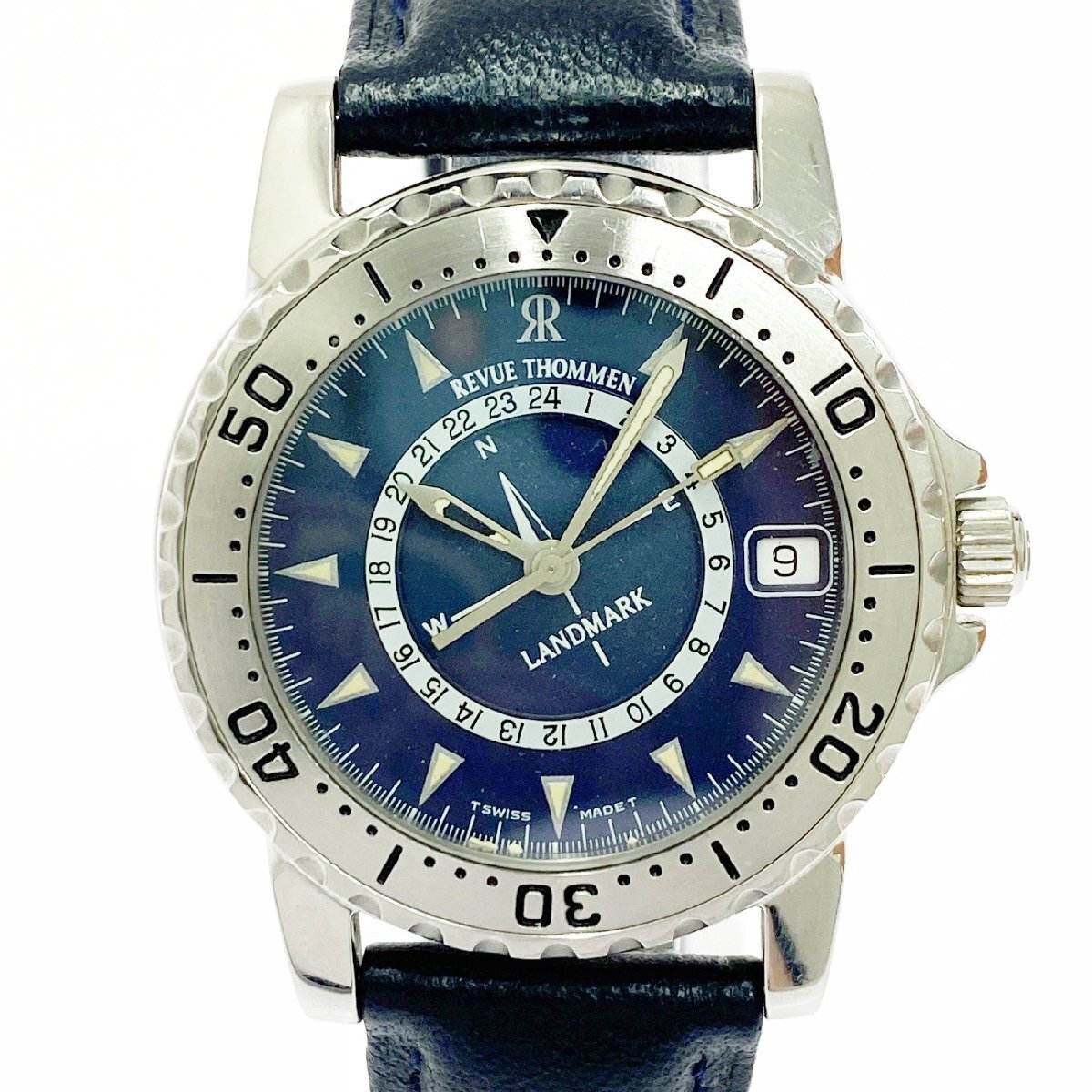 【1円スタート】REVUE THOMMEN レビュートーメン LANDMARK ランドマーク SS ネイビー文字盤 QZ メンズ腕時計 A909791