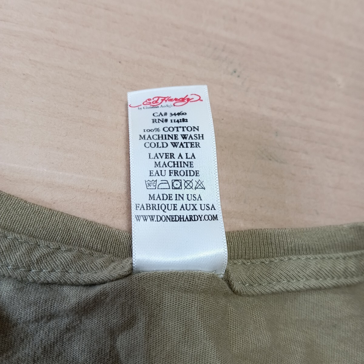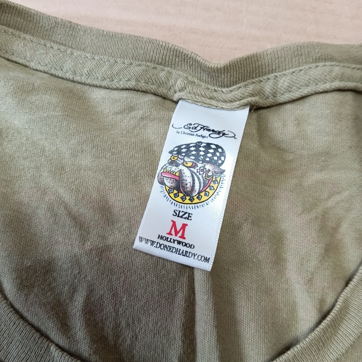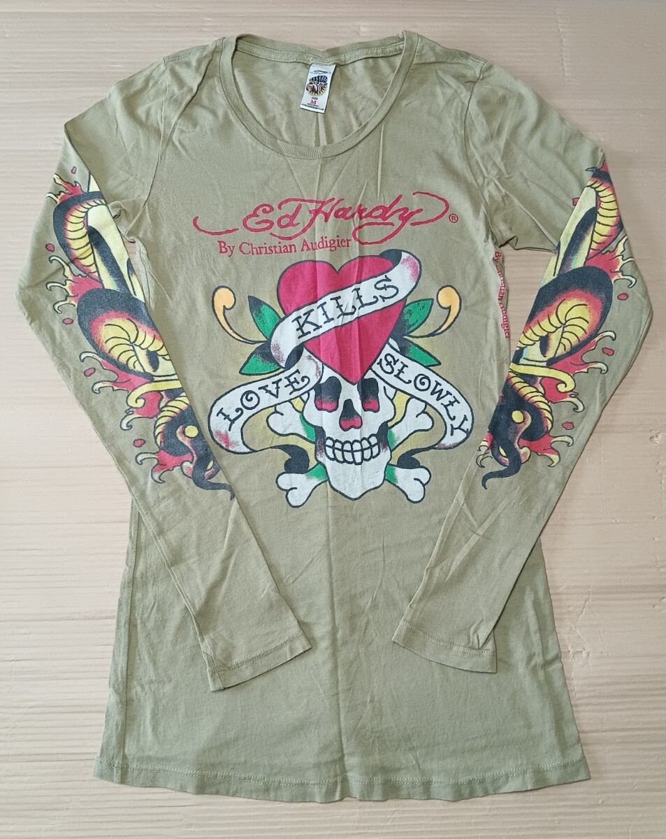 Ed Hardy エドハーディー 長袖Tシャツ チュニック スカル ハート レディース カーキ Mサイズ 146-097766