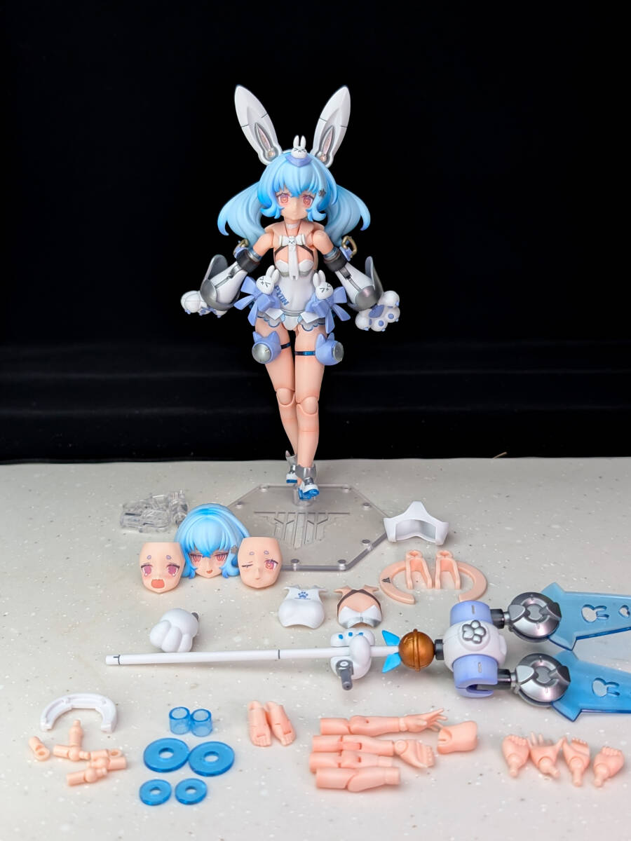 コトブキヤのプラモデル、メガミデバイス puni☆mofu 雪トゥの塗装済み完成品です。