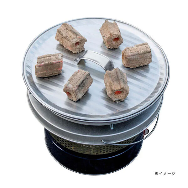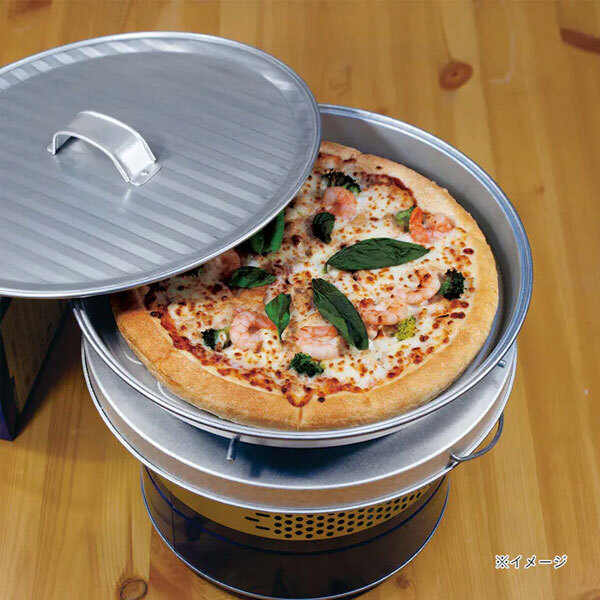 ピザ焼き調理は蓋の上にも炭をおいて上下からの火力で焼き上げます。