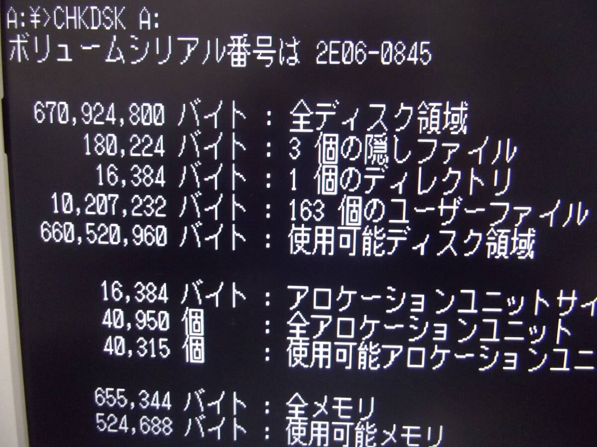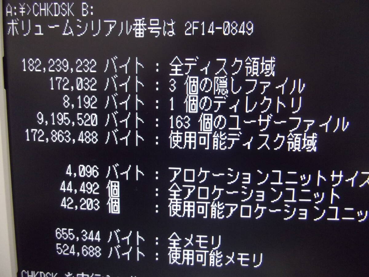 ・写真7枚目:CHKDSKコマンド実行 Aドライブ確認画面