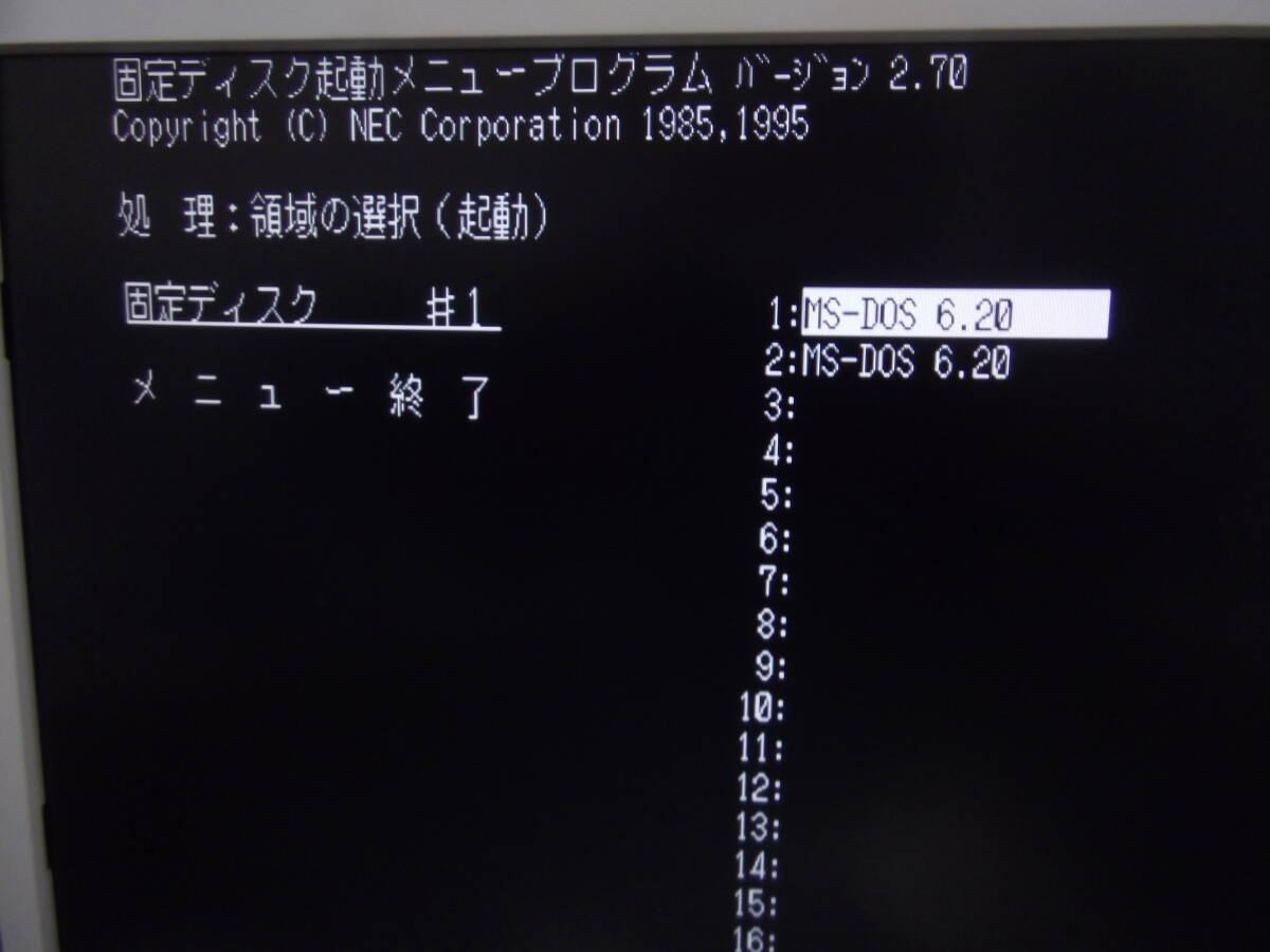 ・写真6枚目:PC98の電源起動時にOS起動が選択できます。(Windowsを入れて使えます)