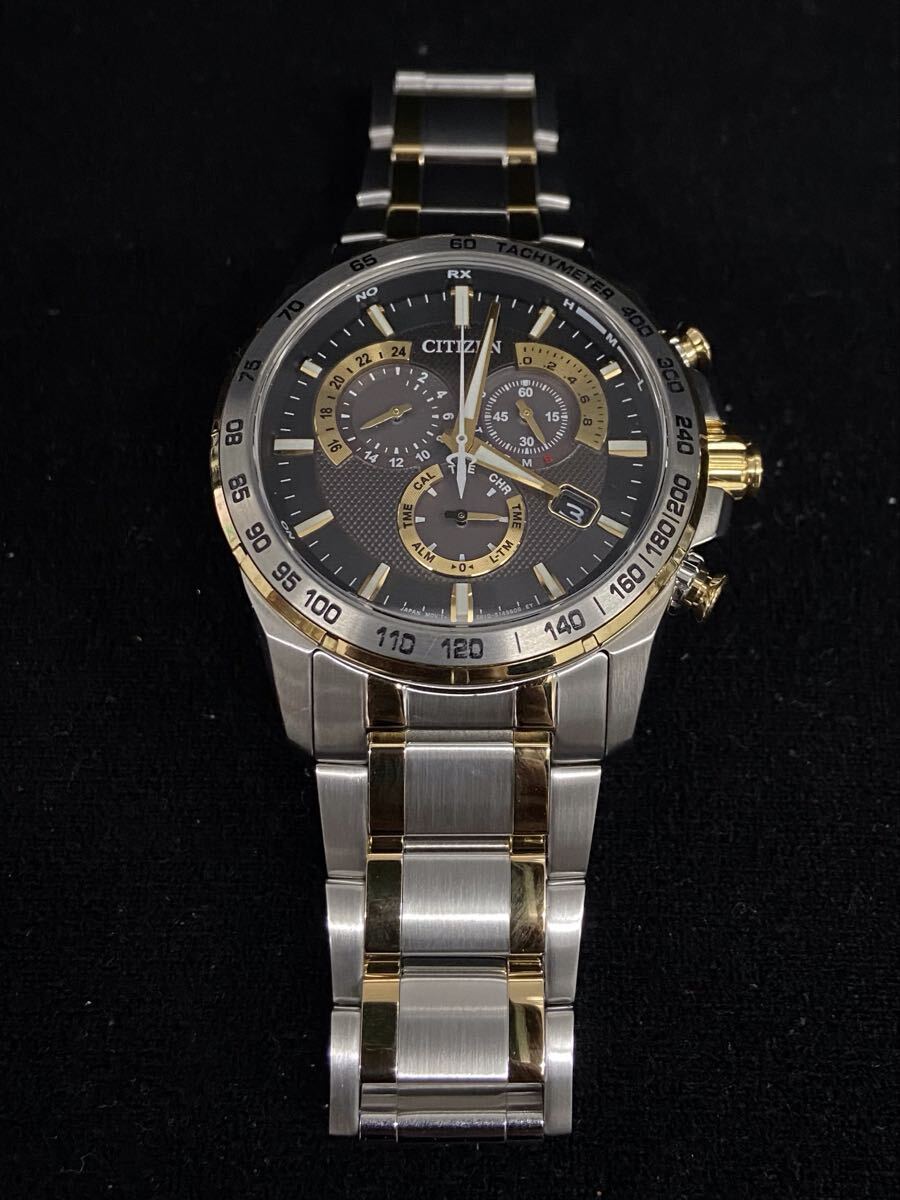 商品名 A459★CITIZEN シチズン E610-S104840 電波ソーラー ブラック文字盤 メンズ腕時計 箱あり 動作未確認 ジャンク