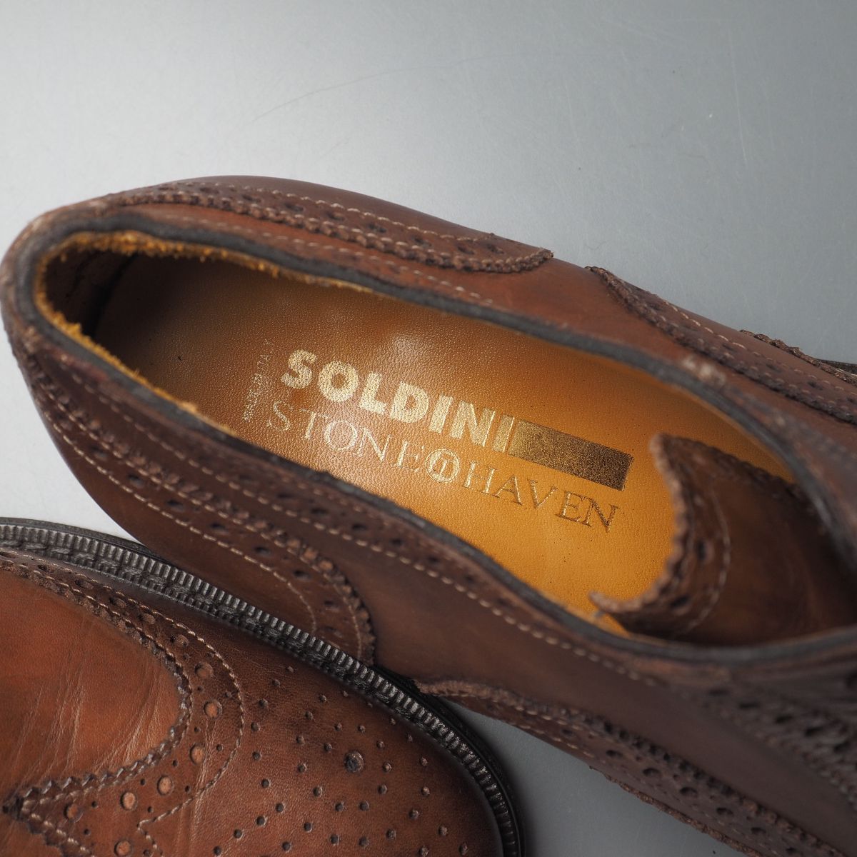 W5517//イタリア製*ソルディーニ/SOLDINI*メンズ40/ウイングチップ/フルブローグ/レザーシューズ/革靴/茶/ブラウン