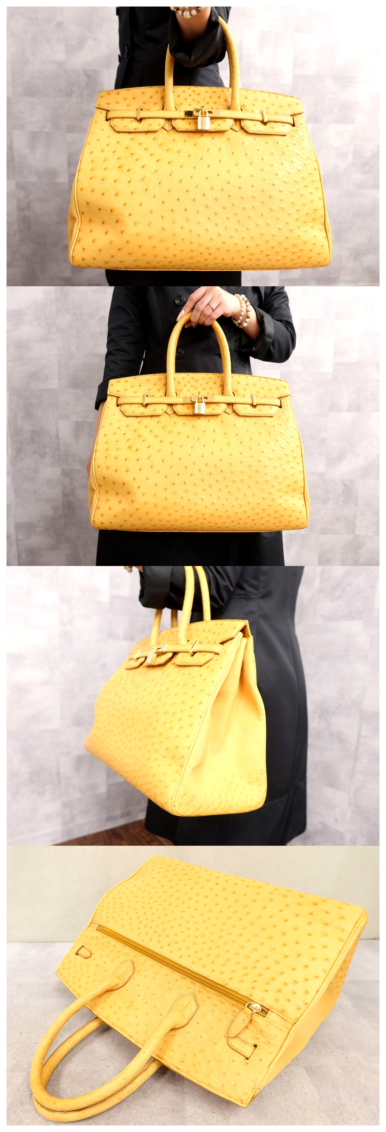 Product name: ●超美品●iii sanpo 三宝●JRA認定●オーストリッチ 本 ダチョウ 革●ハンド バッグ●イエロー系●ゴールド金具●A4 収納 かばん●Js65366