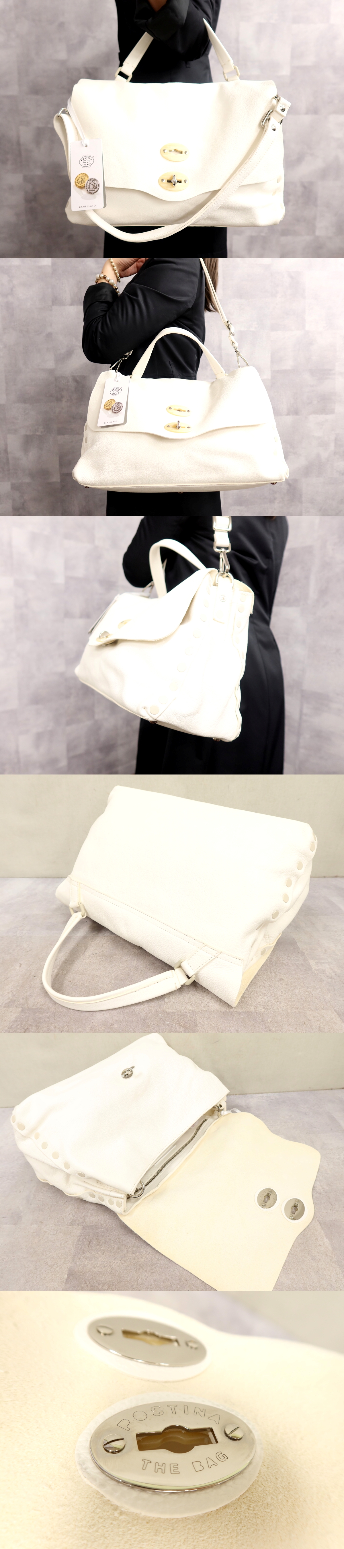Store ●超美品●ZANELLATO ザネラート●ポスティーナ●カーフ レザー 本革●2way ハンド バッグ●白●シルバー金具●腕掛け●B5 かばん●Js65701