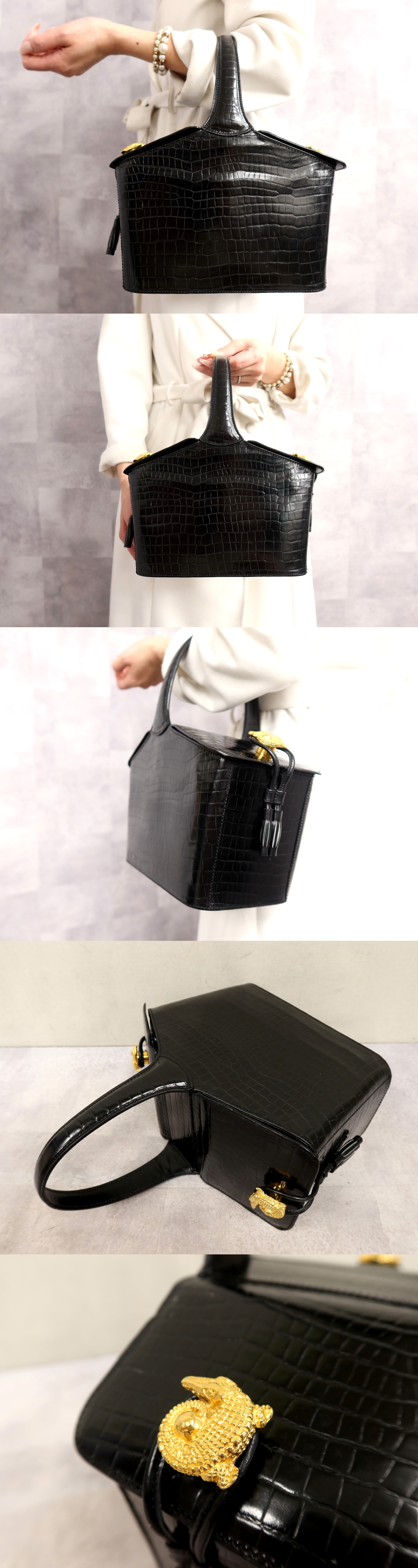 Product name: ●超美品●CELINE セリーヌ●クロコダイル 型押し レザー 本革●ハンド バッグ●黒●ゴールド金具●腕掛け●ヴィンテージ●かばん●Js65649