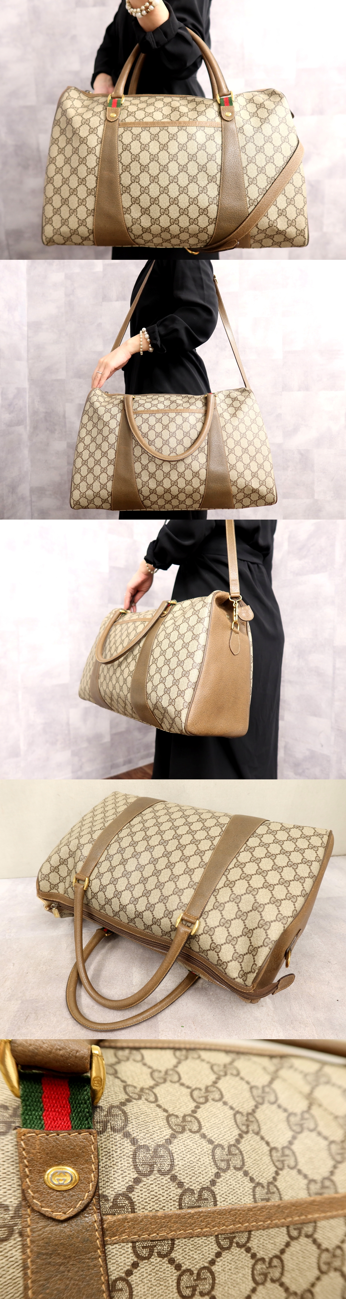 Store ●超美品●オールド グッチ●シェリー●GGスプリーム●PVC カーフ レザー 本革●2way ボストン バッグ●ブラウン系●ヴィンテージ●Js66636