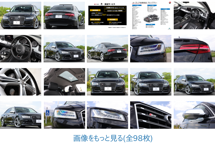0-100kmを僅か4.1秒で駆け抜けるモンスターセダン、アウディ”S8”が入庫いたしました。マトリクスLEDヘッド搭載し、前期ではオプション装備だったプレセンス機能は標準にて装備した後期モデルです。気筒休止機構《シリンダー・オン・デマンド》搭載でC08モード燃費 10.5km/リットルと燃費もよくあらゆる局面で前期からの大幅な進化を体感していただける、そんな一台です。エンジン、オートマはじめその他機関に関しても不具合は皆無です。新車乗り出し価格¥1800万オーバーの後期S8ですから、当然装備も充実しております。距離こそ多く走っていますが程度も申し分なく、快調そのもの。おすすめの1台です。
