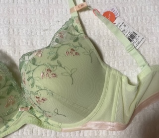 Product name: 新品★トリンプ★E80★ブラ★ノンワイヤー★きれいライトグリーン★お花模様レース★中央に飾りリボン★ブラジャー★AMO'S STYLE h
