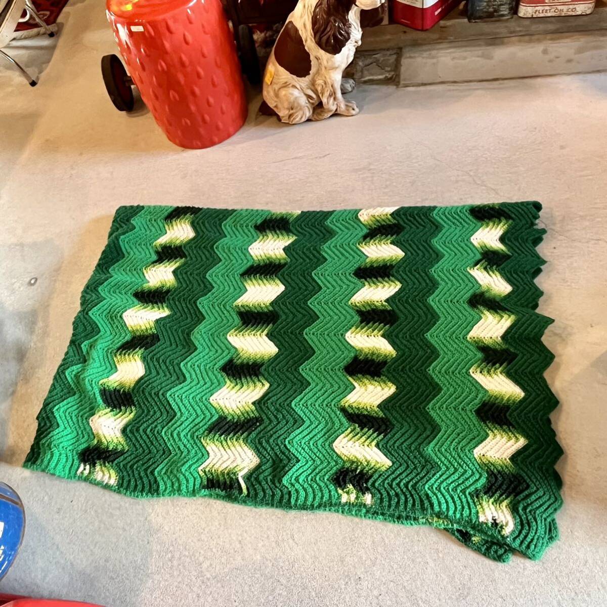 【1970s USA vintage】グラニーブランケット グリーン系 クロシェ 手編み アメリカ ビンテージ