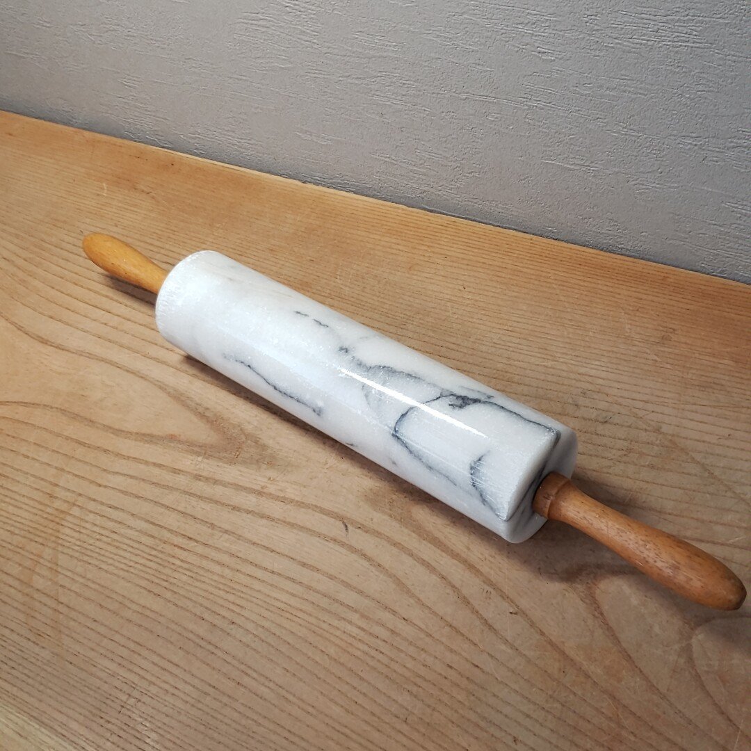 大理石製 のし台 めん台 めん棒 のし棒 木製柄 調理器具 製菓 キッチン パン クッキー ピザ パスタ 餃子 熱伝導低い 【100e2213】