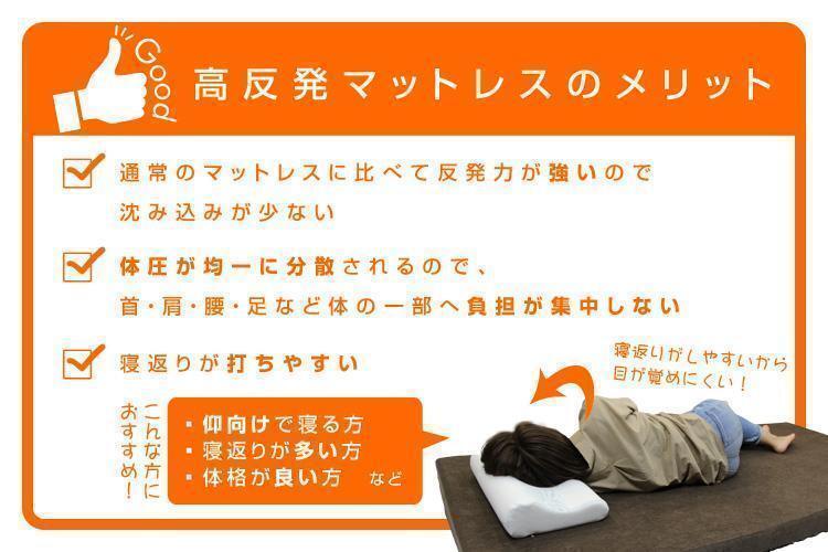 適度な硬さで身体をしっかり支える、高反発マットレスです。