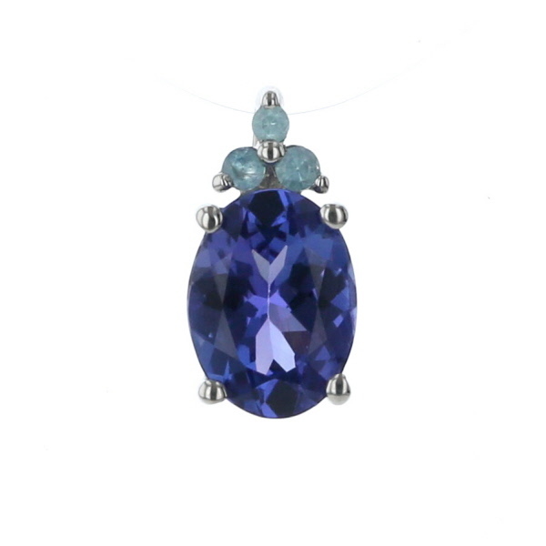 オーバル型のタンザナイト、その上部に3粒のブルートルマリン(パライバトルマリン)をセットしています。