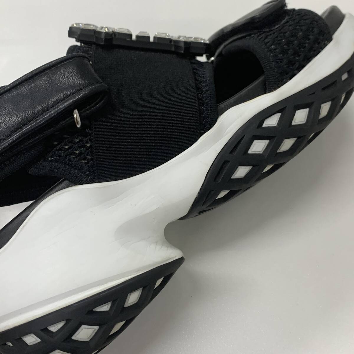 Product name: M11250 ロジェヴィヴィエ ヴィヴラン レザー ファブリック ストラスバックル ビジュー サンダル ブラック
