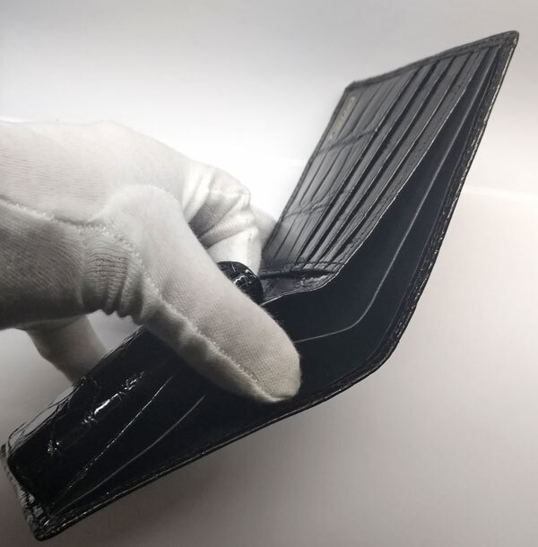 クロコダイル本皮製、贅沢に内側までクロコダイル皮を使用した無双つくり。