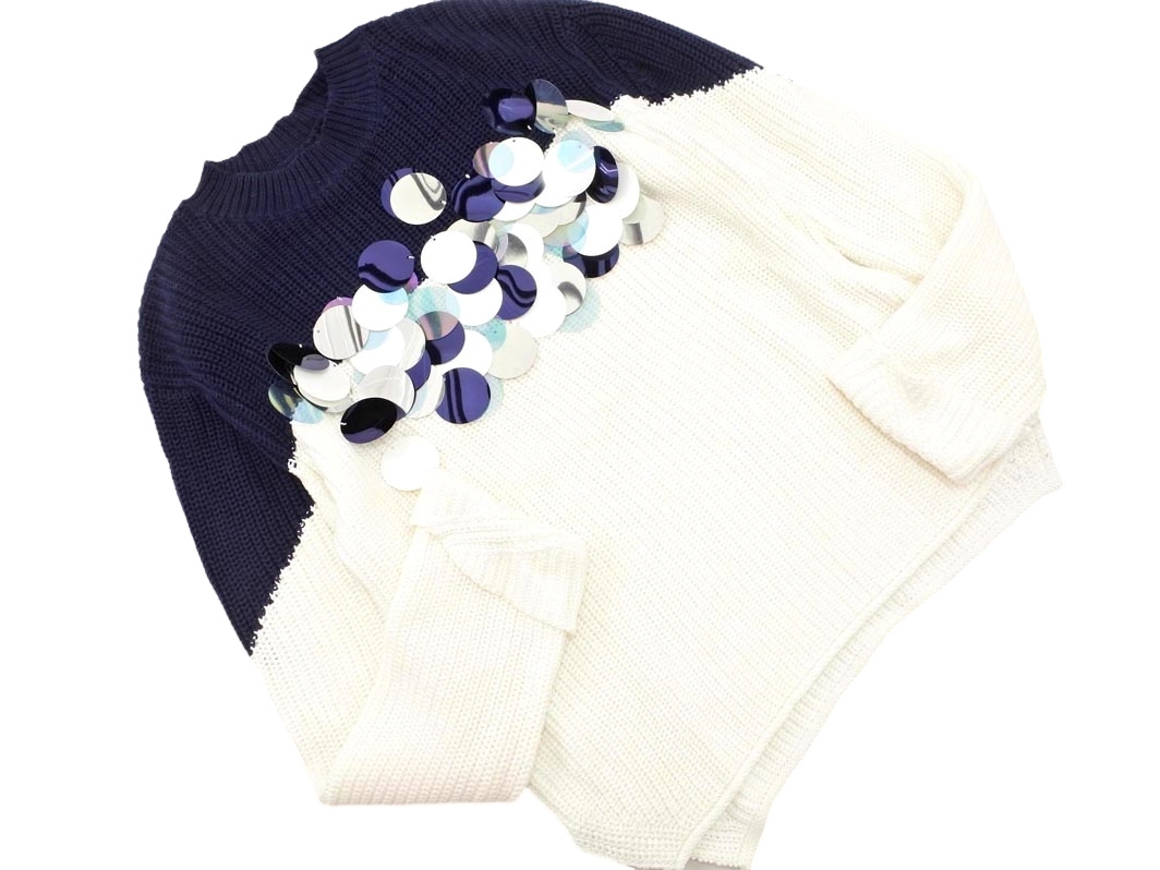 Chesty チェスティ デザイン ニット セーター sizeF/白x紺 ■◇ ☆ fba4 レディース