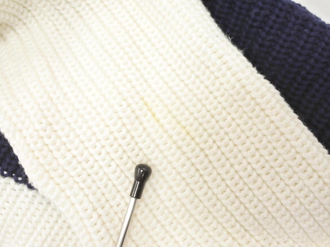 後ろ面・左袖先折り返し部分の糸が切れています。