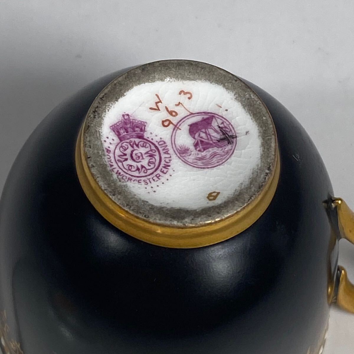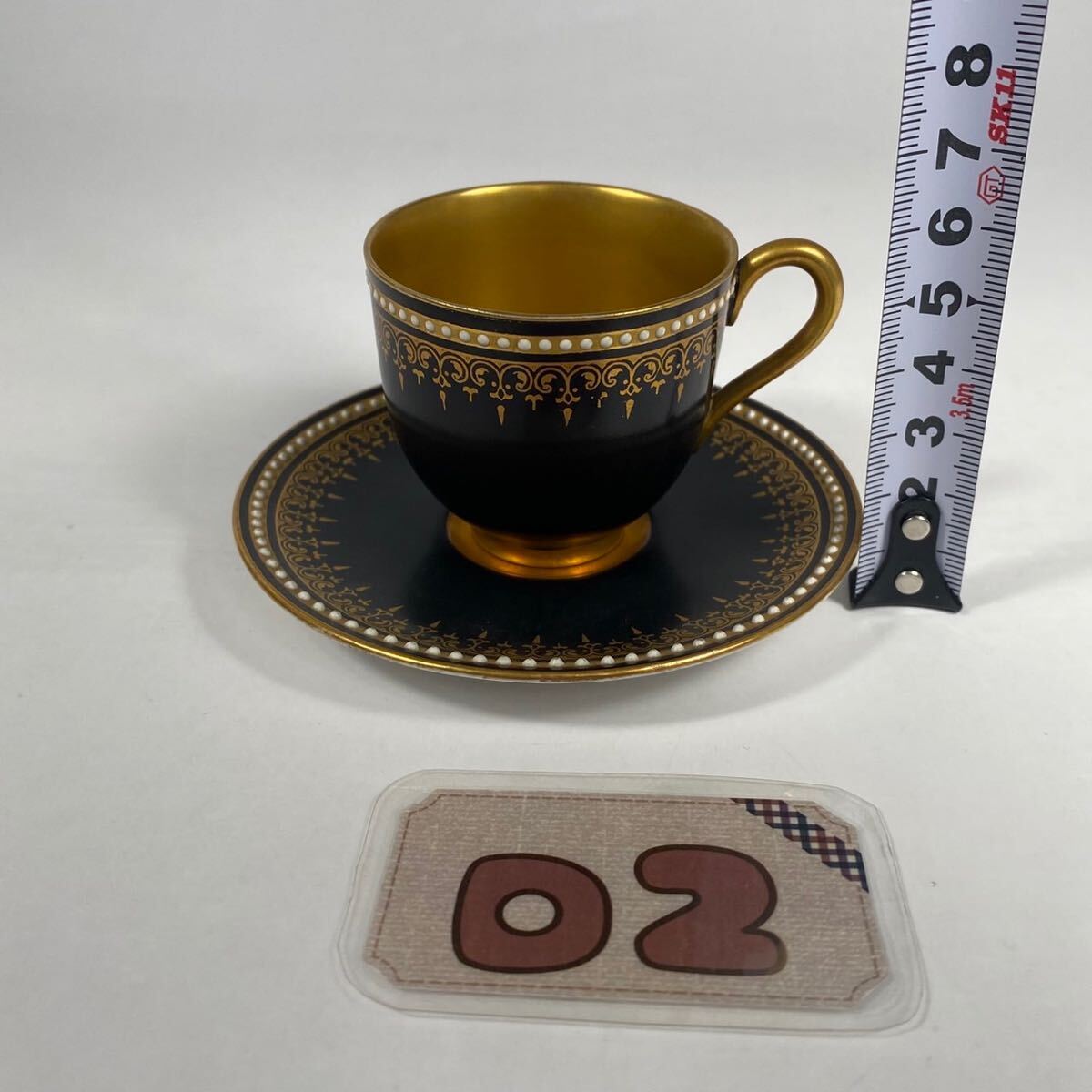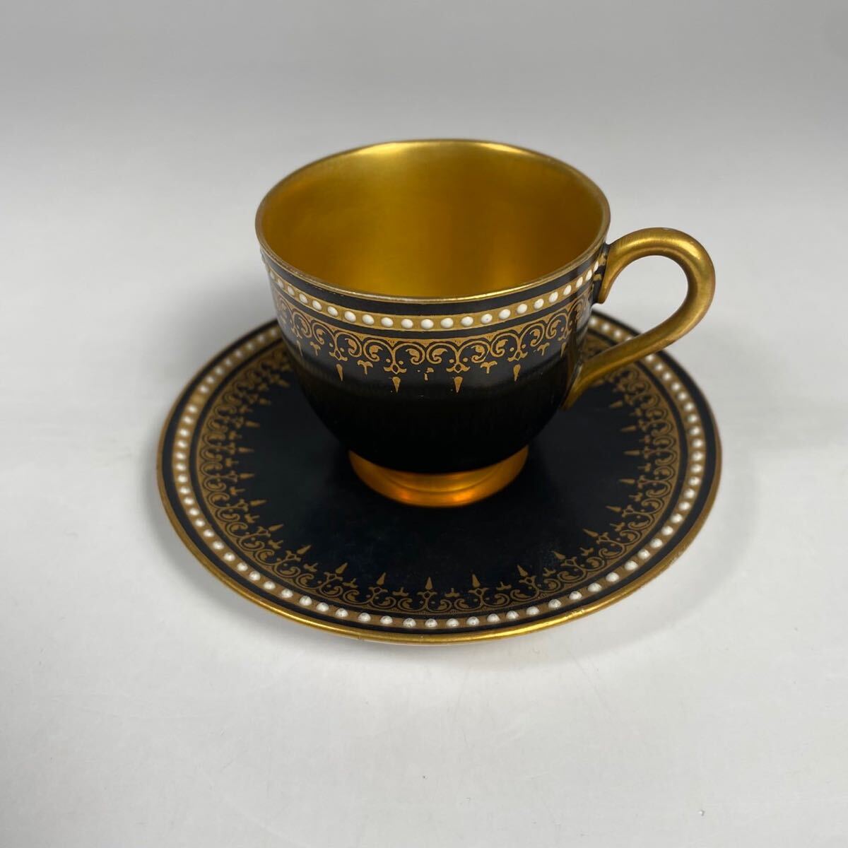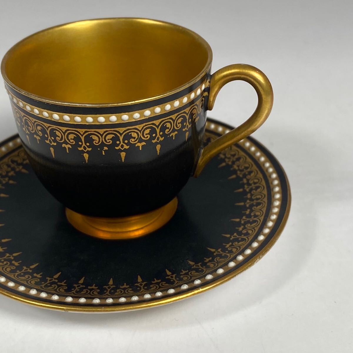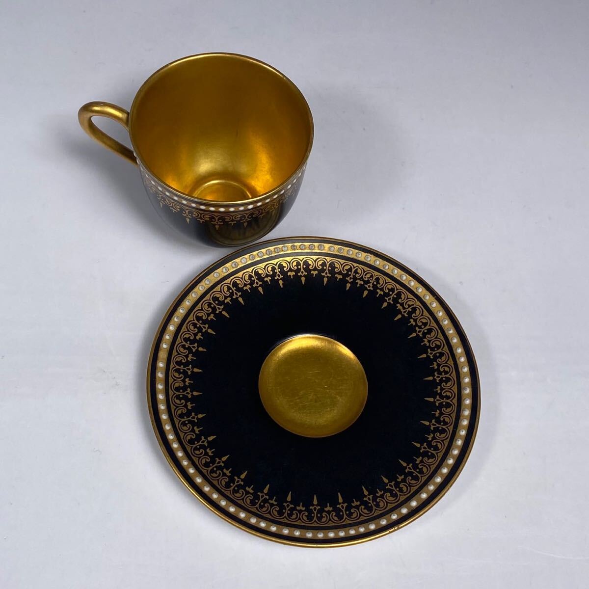 19世紀 アンティーク ロイヤルウースター 金彩 ジュエル装飾 デミタスカップ 金盛り ブラック カップ ソーサー コーヒーカップ