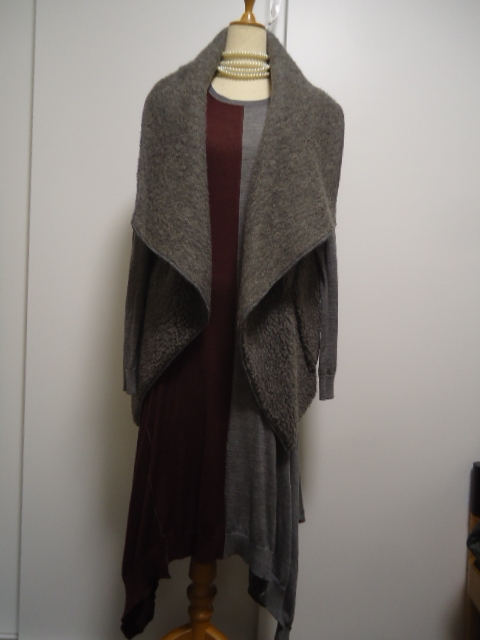 バイヤーの友人の委託です ステラマッカートニーのかっこいいワンピースです ツートンカラーで細見えします サイズ40 肩38 袖65 背脇下身幅42 丈後ろ97 サイド長さ肩から約123 素材 ウール70シルク30 ニットなので伸縮します 私が11号サイズで綺麗に着られるサイズ感です 少しの毛羽立ちがあるほかは綺麗です コート下にもすっきり着られて重宝します