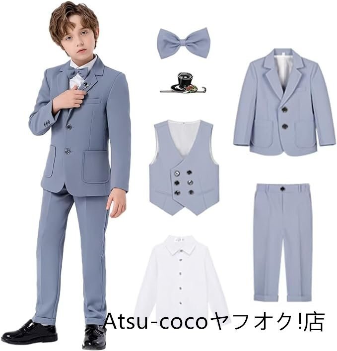 Product name: 男の子 スーツ キッズ フォーマルスーツ 子供 ボーイズ 長袖 無地 卒業式 入学式 七五三 結婚式 発表会 6点セット ワインシャツ 蝶ネクタイ