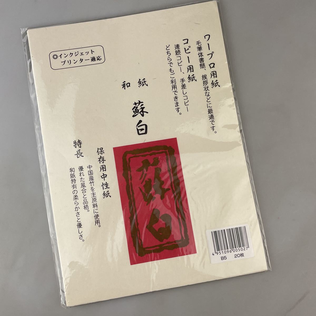 【送料無料】在庫大量 インクジェットプリンター対応 和紙 蘇白 B5 20枚入り ワープロ用紙 コピー用紙 イエロー