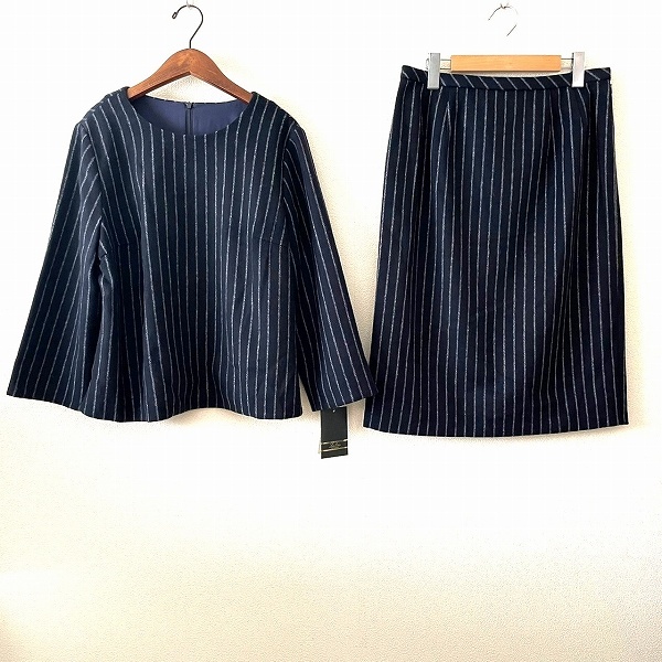 Product name: #wnc レリアン Leilian セットアップ ツーピース 13 紺 白 ストライプ バックジップ 大きいサイズ タグ付き 美品 レディース [794598]