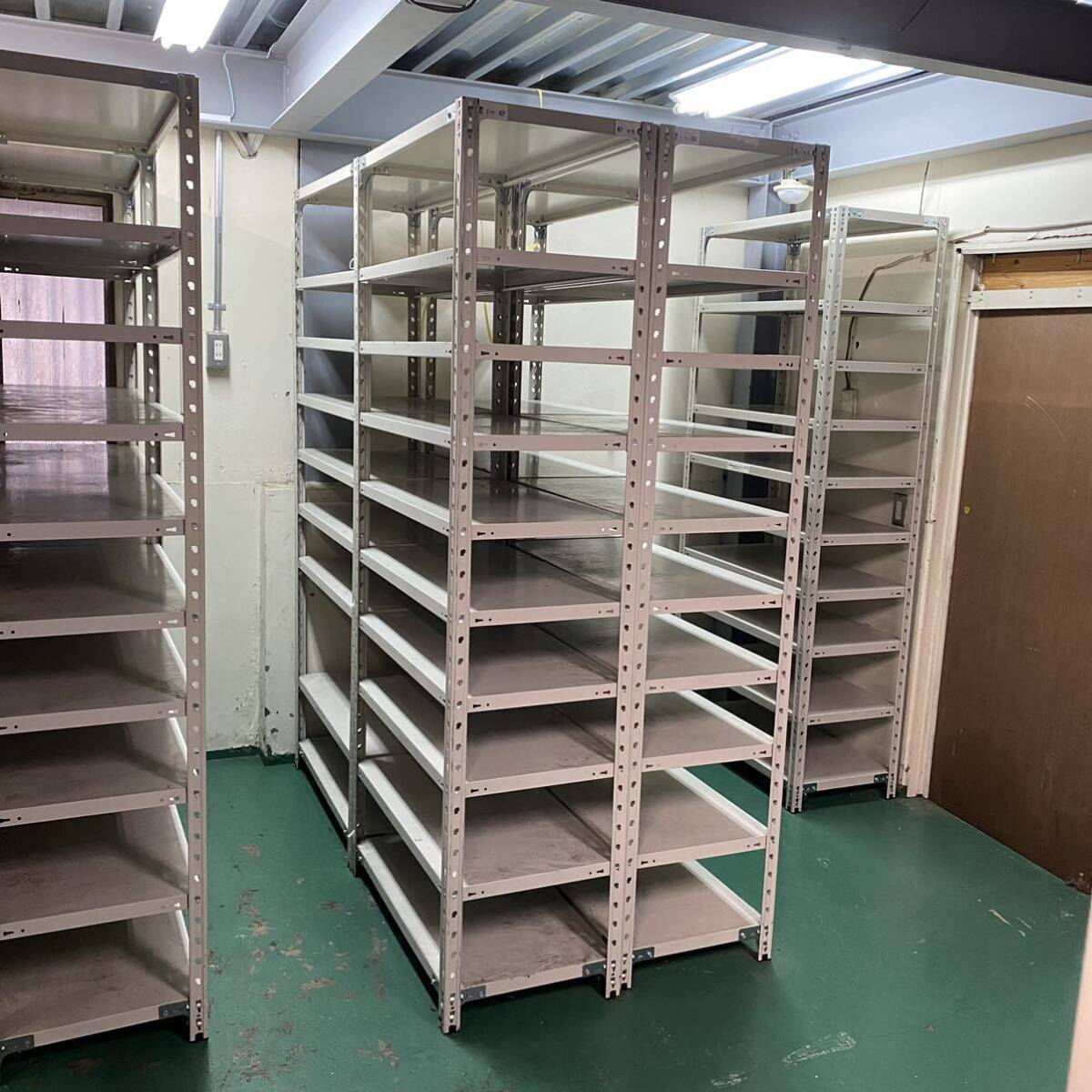 大型のスチールラックになります。こちらはバラしておりますので、お渡しはバラでのお引き渡しとなります。