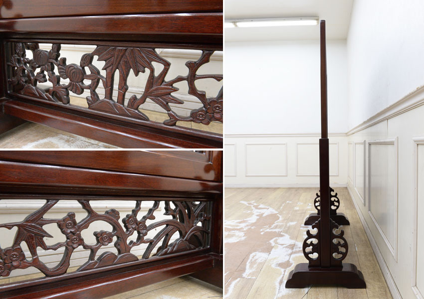 Product name: KB05 唐木 本花梨 総無垢 彫刻 格子 屏風 衝立 つい立 オブジェ 飾り物 中国 和 仕切り パーテーション 玄関 リビング等に