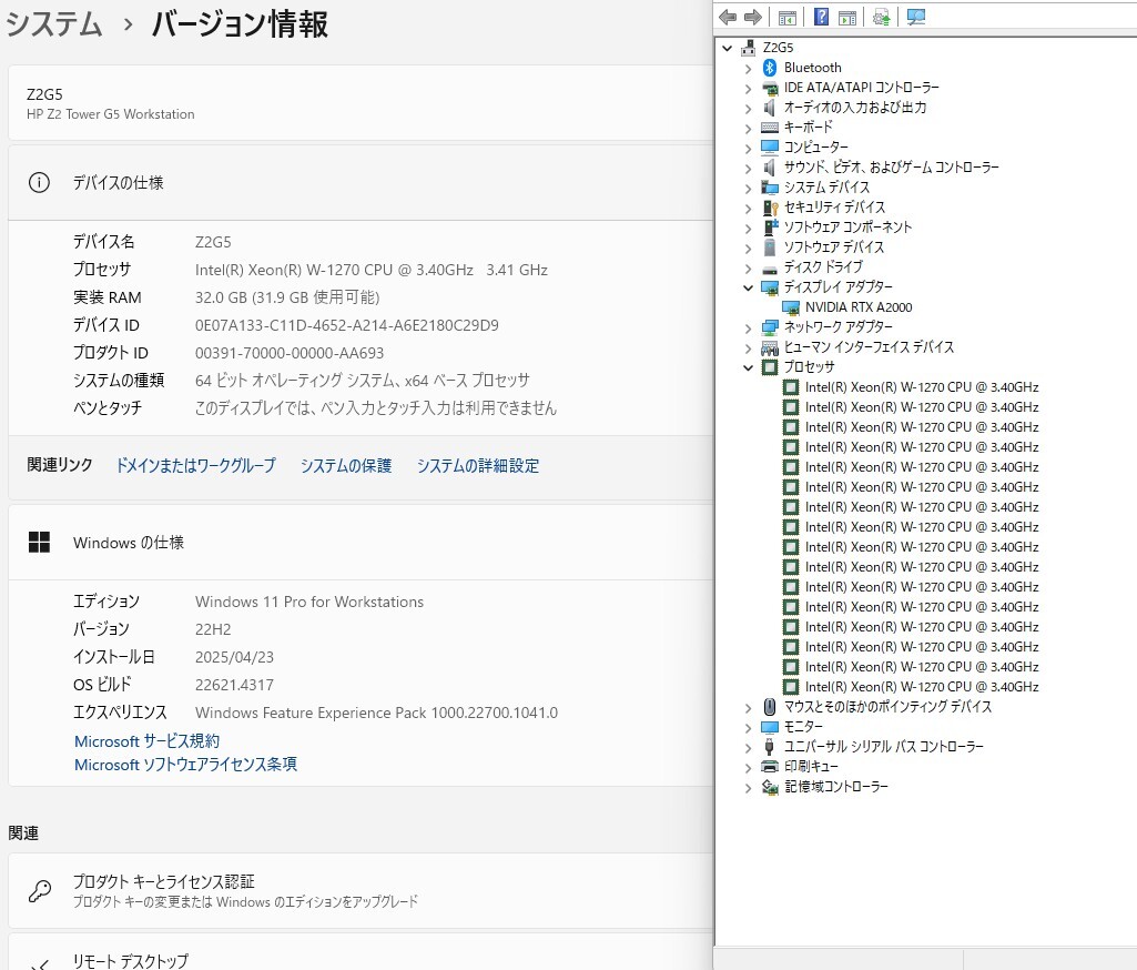 最新OSのWindows11 pro For Workstationをインストール、ライセンス認証済みです。