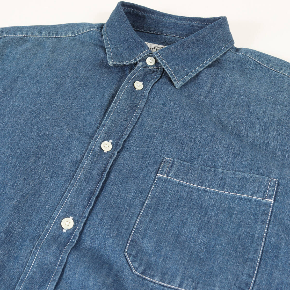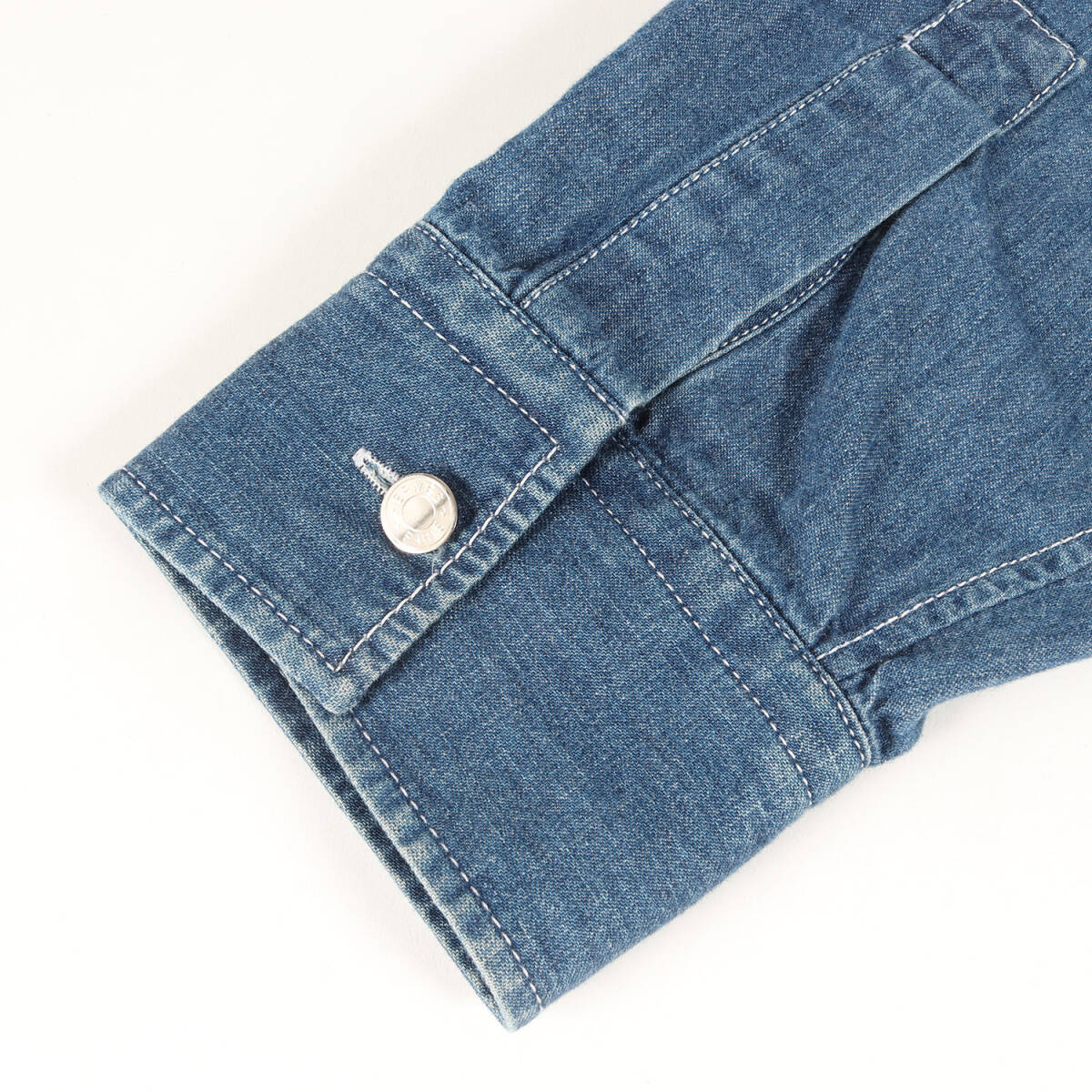 柔らかく上質なコットンデニム生地を使用し、カフスセリエボタンが配され、レギュラーカラー、プレーンなデザインで仕上げられたデニムシャツです。