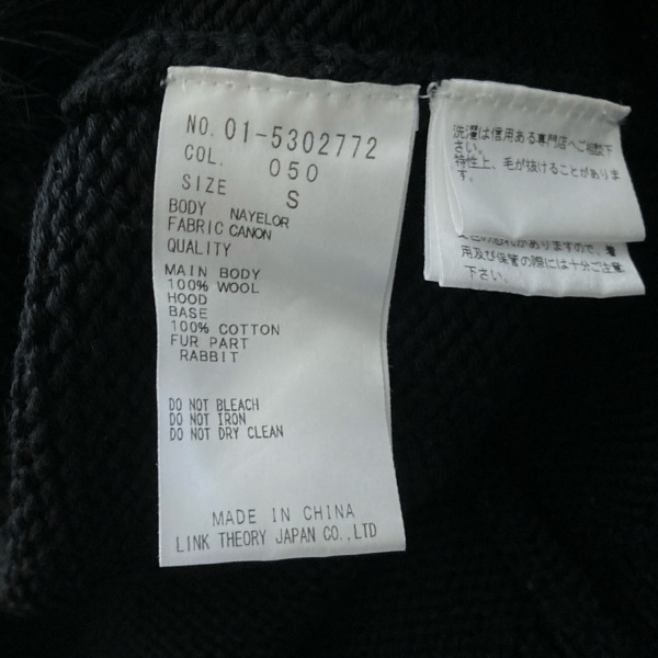 Product name: セオリー theory サイズS - 黒 レディース ノースリーブ/ニット/ラビット(ラパン)/ジップアップ/春/秋 コート