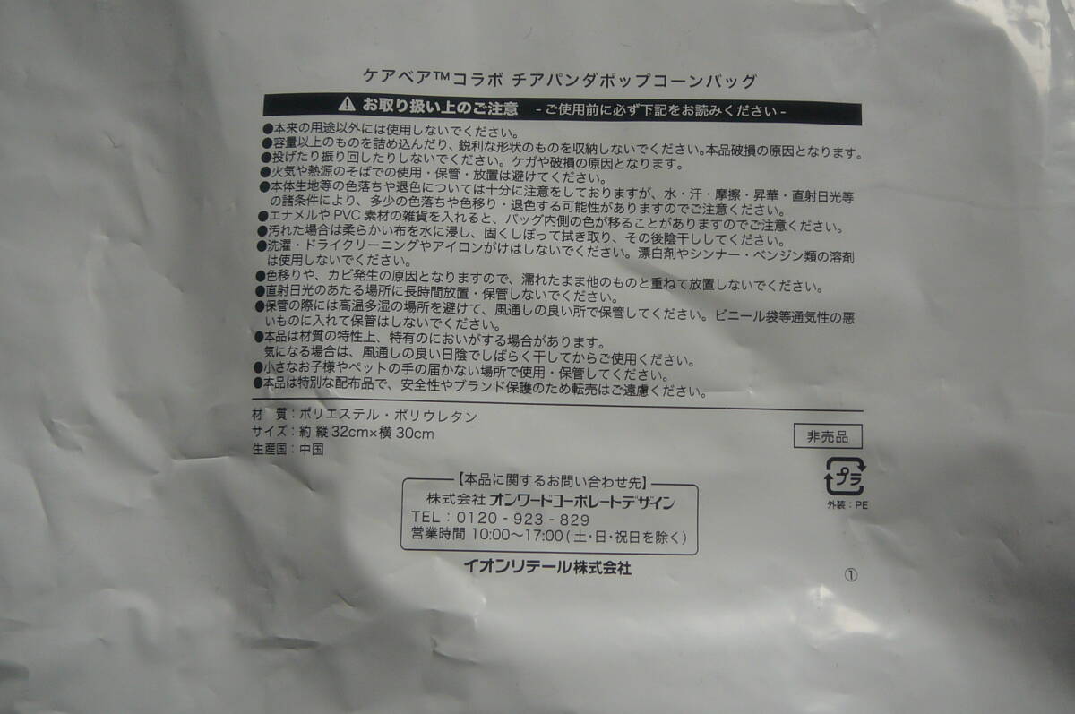 Product name: ●イオン ケアベアコラボ チアパンダ ポップコーンバッグ 未開封