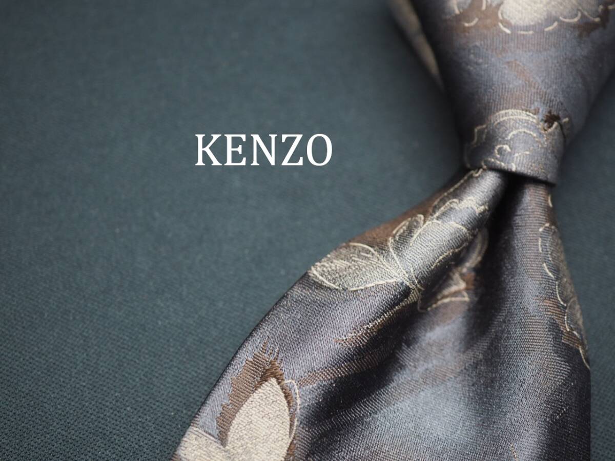 美品【KENZO ケンゾー】 E2017 グレーブラウン系 SILK ブランド ネクタイ 古着 良品