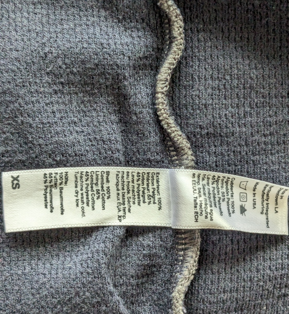 裏地の素材はサーマル地(ワッフル地)。