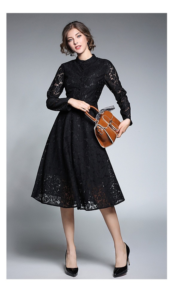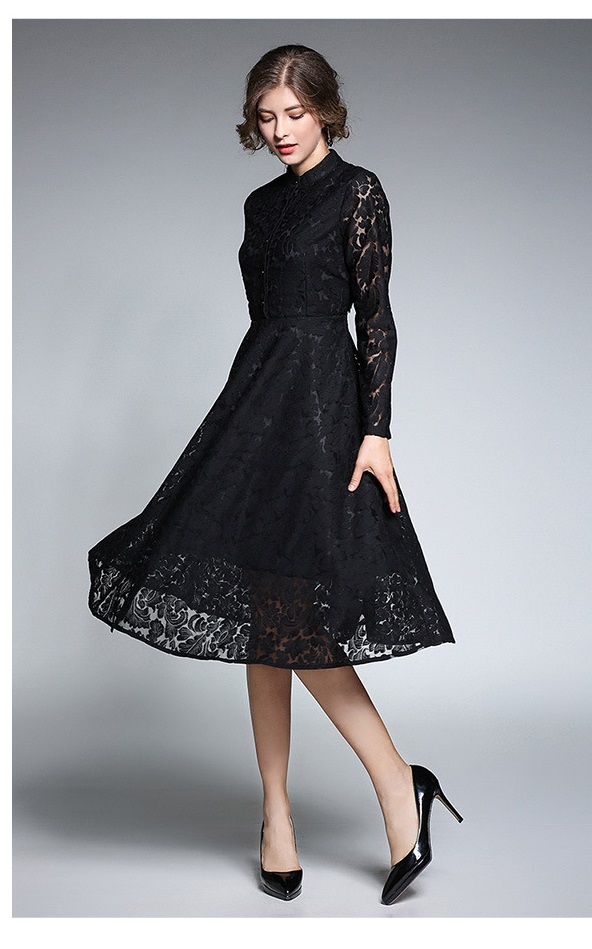 Product name: 在庫一掃セール!激安!ブラック 6L 通勤 パーティー 上品感 長袖 花柄総レースドレス ワンピース