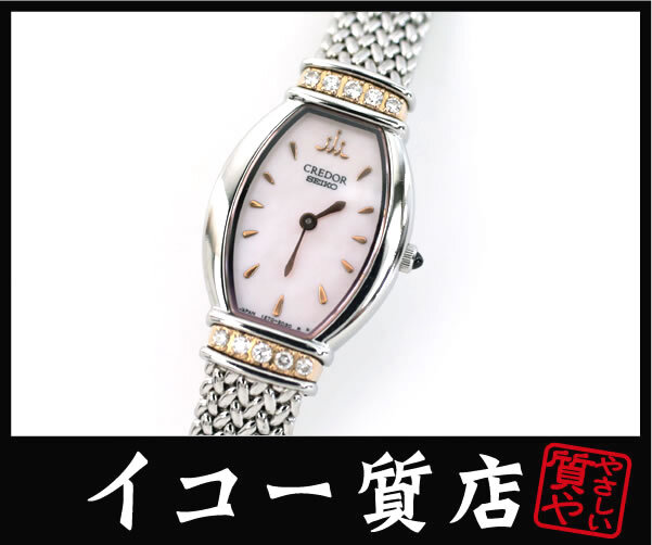Product name: イコー質店 セイコー クレドール ★希少モデル 美品 シグノ 1E70-3B90 18KT/10Pラグダイヤ ピンクシェル レディース RY7410