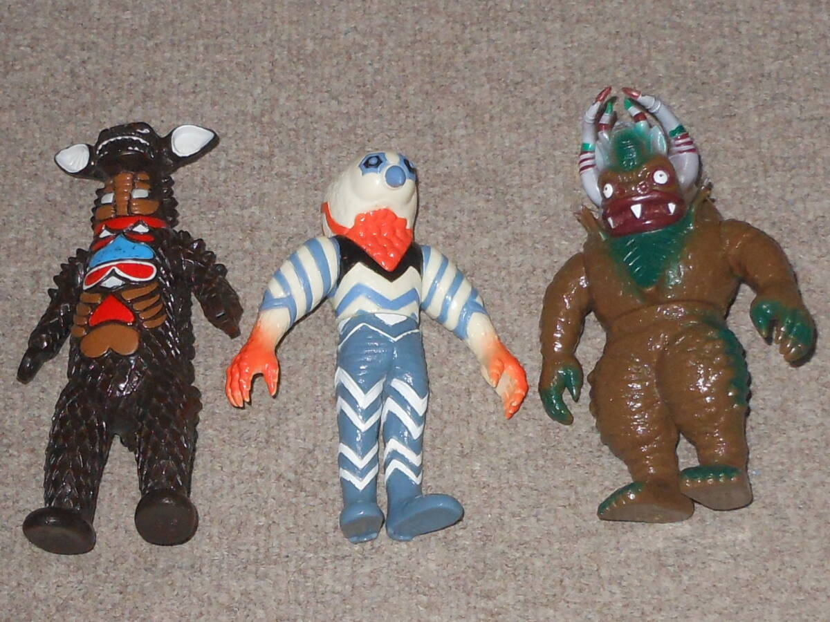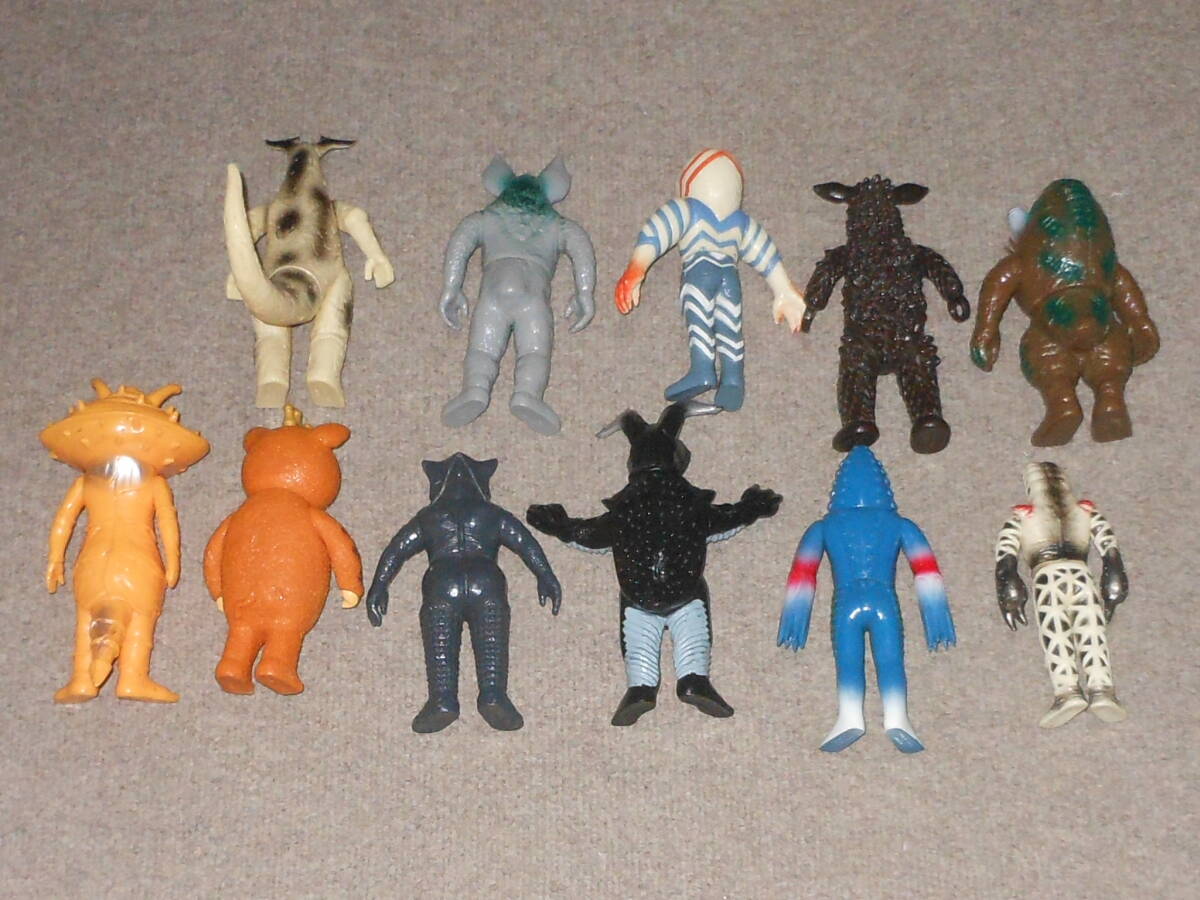 ブースカ、カネゴン、ゼットン、メフィラス星人、メトロウ星人、ガッツ星人、ギャング?エレキング、イカルス星人、ゴドラ星人、クタス?の11体の様です(名称間違いの時は、お許し下さい)サイズは、全長、約14~18cm位です。ブースカは、1993 BANDAI JAPAN、他は、1983 BANDAI JAPAN又は、CHINAとある様です(間違いの時は、お許し下さい)全て中古品なので汚れ、変色、色落ち、キズ、スレ、クセ、変形、付着、欠損、劣化、イタミ、他があります。画像の物が全てで、現状のお引き渡しになります。状態重視の方、新品、美品、完品希望の方、神経質な方は、ご遠慮下さい。ノークレーム、ノーリターンでお願いします。梱包前ですが、発送は、ゆうパック60サイズです。定形外郵便¥1350円も発送可能です。送料は、下記の料金表でお願いします。