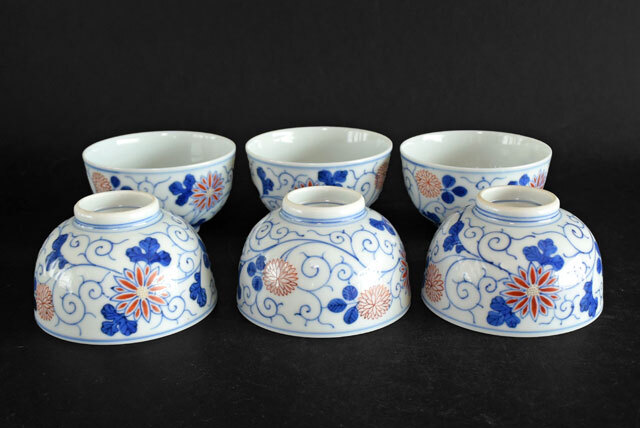 Product name: 茶道具 萬壽堂(在印)  色絵花唐草模様 煎茶碗 六客
