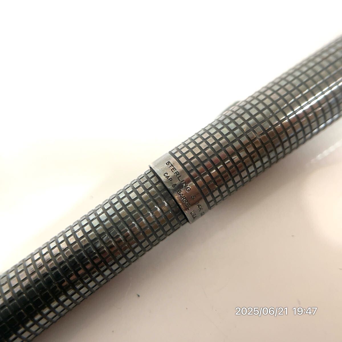 SILVER シルバー PARKER パーカー ブランドロゴ 矢クリップ ノック式 メッシュ 網目柄 ボールペン 筆記用具 文房具