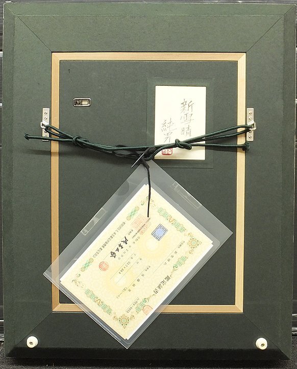 お支払い方法はみずほ銀行、ゆうちょ銀行、ストア決済(コンビニ決済含)、御用意しております。 発送は佐川急便、ヤマト運輸、西濃運輸(大型作品は西濃運輸となります。概ね40号以上の作品)いずれかの利用となります。※運送会社に御希望のある方は御落札後お知らせください ※入金確認後2日以内に発送致します 新規IDの方及び悪い評価が多い方からのいたずら入札が大変多いので入札を削除する事もあります。 出来る限り現物に近い色合いを出せるように撮影しておりますが、人それぞれの感じ方や色彩感覚、撮影環境、カメラ、モニター等環境の違いよる差異は御了承下さい。 同梱は致しません。個別に御決済をお願い申し上げます。保管箱や黄袋の有無は表中附帯品の欄に記載致しております。 額縁や箱等はあくまで商品ではなく附帯品とお考え下さい。額は新品ではありません。販売しているのは額縁ではなく作品そのものです。 額、箱等に対する落札後のクレームは一切御遠慮ください。額縁や箱等附帯品重視の方は御遠慮頂いた方が宜しいかと思います。箱作成等を御希望される方は別途料金が必要です。 あまりに仕入れ値とかけ離れている場合は出品を取り消す事がございます。御理解下さいませ。
