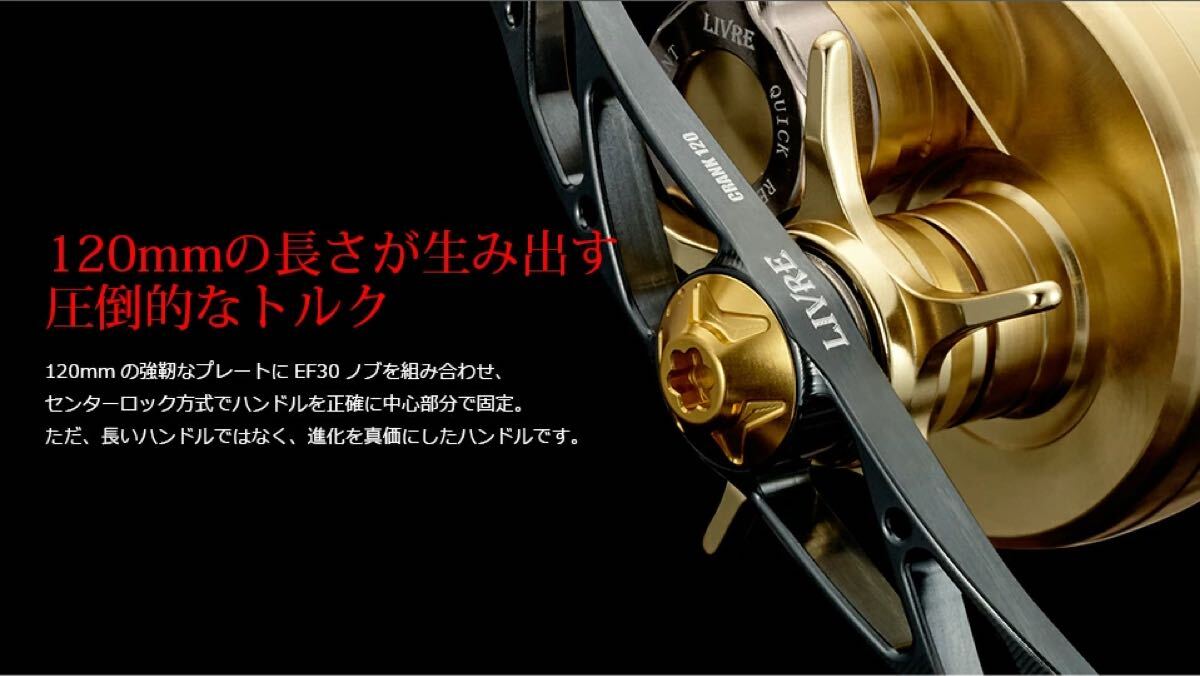Product name: LIVRE リブレ ネイビーカスタム限定モデル クランク 120 チタンノブEF30 紅牙 ダイワ ソルティガIC シマノ カルカッタ タイラバ コウガ