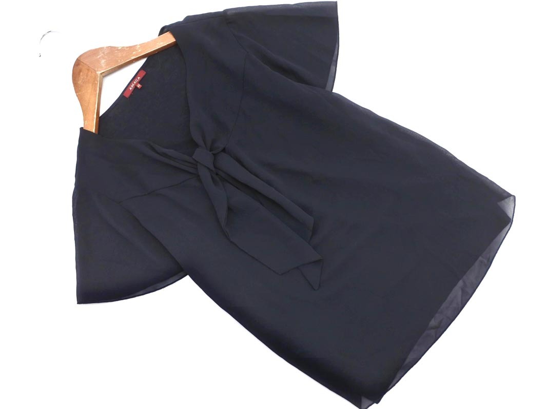 ネコポスOK AMACA アマカ シフォン 切替 サマー ニット セーター size40/黒 ■◆ ☆ ffc7 レディース