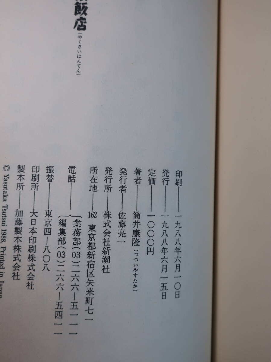 Product name: □新潮社【薬菜飯店】 筒井康隆短編集  ハードカバー88年初版 表題作のほか、スプラッターものの傑作中編「偽魔王」ほか